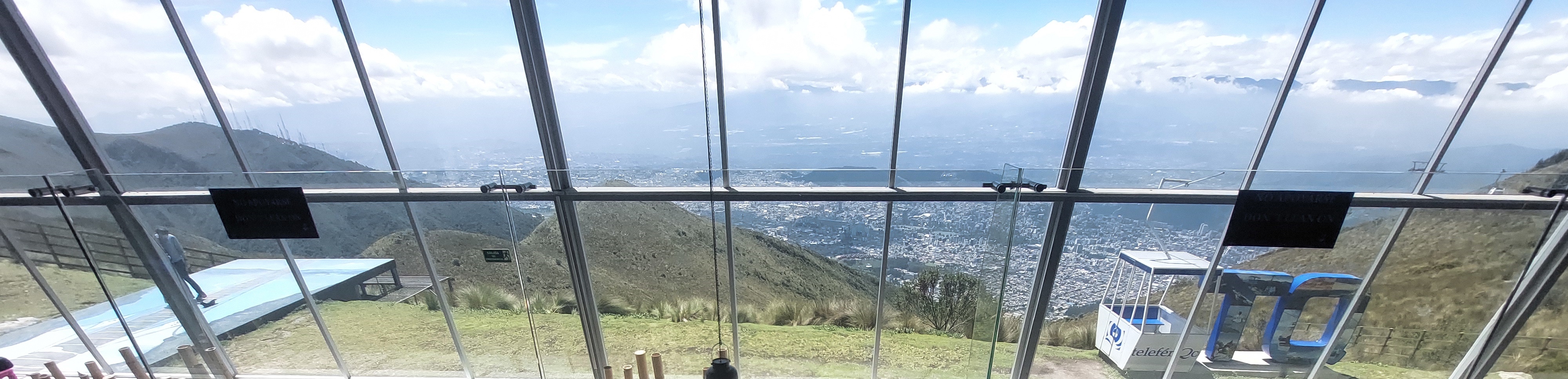 From the cabins, you can see Quito’s unique north–south valley, stretching for more than 30 km (19 mi). On clear days, distant snowcapped volcanoes are visible: Cotopaxi (5,897 m / 19,347 ft), Cayambe (5,790 m / 18,996 ft), Antisana (5,758 m / 18,891 ft), and Chimborazo (6,263 m / 20,548 ft).